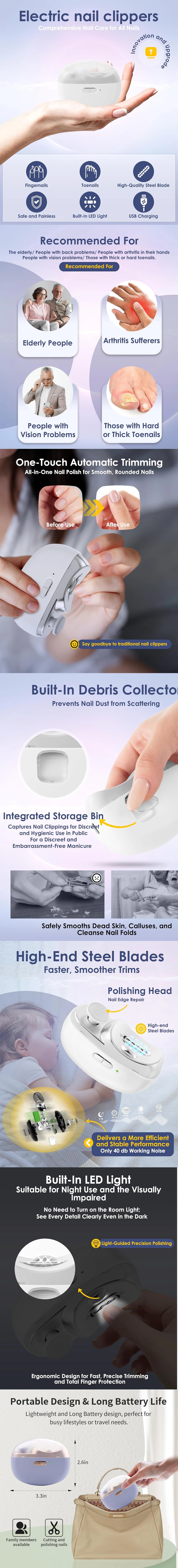 Perfect for families, new parents, elderly care, travel, and everyday grooming, the automatic electric nail trimmer provides a safe, hygienic, and professional solution for nail care.